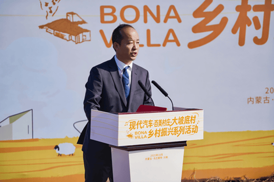 中国乡村发展基金会副秘书长王军在致辞中表示,自2021年现代汽车响应国家乡村振兴号召,与中国乡村发展基金会携手在兴和县布局“百美村庄”项目以来,双方始终致力于聚焦生态、产业、民生协同发展,扎实推进系统性乡村振兴工作。2023年8月,百美村庄·大坡底村项目顺利落成,通过“乡村旅游+”模式为乡村发展注入活力。如今,草原方舟与低碳光伏项目的落地,更给这片土地装上“生态引擎”与“绿色电源”,助力大坡底村的乡村振兴之路走得更稳、更远、更有底气。 王军指出,中国乡村发展基金会始终以“助力乡村发展,促进共同富裕”为使命,未来将围绕产业发展、人才赋能、乡村建设等重点,与现代汽车等社会力量一同深耕大坡底村,为乡村振兴注入更多公益力量。